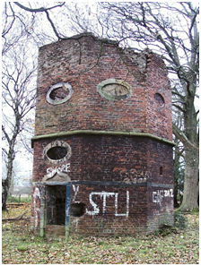 The Pitch House was converted into estate offices and an octagonal doocot was built on the courtyard. Its walls were of brick with stone string courses and an eaves course punctuated by pigeon holes, some of which were blank. A timber glover on the low-pitched roof supported a weather vane.