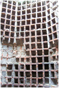 The granary was strategically located at the south-west corner of the complex. Here it provided balance to the south façade and was the first part of the building to be approached from the road along the north bank of the river from Carronshore – the route followed by the wagon way. It measured 52ft 8in by 32ft 6in. In the middle of each of the west, north and east walls of this block there is an original doorway, 6ft wide with an elliptically arched head. The fact that the eastern one was subsequently blocked by the south wing of the house suggests that the granary initially stood alone – but not for long. It was probably the warehouse boasted about in the Scots Magazine in November 1768.