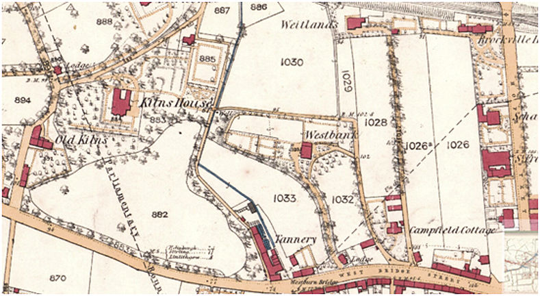 The Nimmo family seem to have come to Falkirk from Torphichen in the 1720s and acquired part of the Lands of Easter Bantaskine called Kilns. That name may derive from the presence of malting kilns for a distillery and the nearby stream would make this an appropriate location. “Kylnes” is first mentioned in 1619 (Reid 2009). Before long one of the sons bought land on the other side of the West Burn of Falkirk which was called Westbank and where he operated a tannery.
