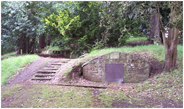 An ice-house was built on the east-facing hill slope to serve the house, shaded by trees. This has now been largely covered over with soil. To its north was a broad terrace for a walled garden and a series of paths meandered their way around the grounds.