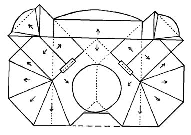 Illus 2: The geometry of Leslie House showing the roof plan (north to the bottom).