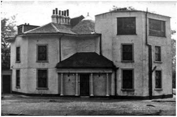 The house faced to the north from whence the drive connected it to the Denny road. The space between the fronts of the two octagonal blocks on this face was filled by a single storey porch with a flat roof containing the main entrance. It was fronted by cast iron columns and a decorative iron pediment. The walls were of random rubble covered by harling with a short plinth course. All in all the building had a very modern appearance.