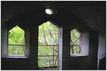 It was designed as a hybrid between a hermitage and a summerhouse, blending into the landscape of the estate except for a rather limited view from a stretch of the river bank. The ornate facade is contained between boulder outcrops that project slightly into the valley and the sandstone vaulted roof is covered by earth and vegetation.