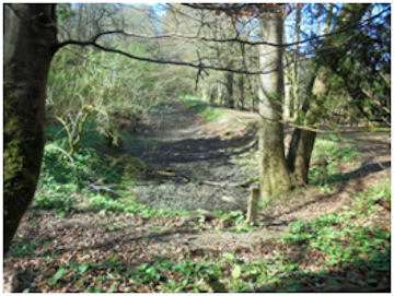 A large circular pond sits at the foot of the hill on the north side of the old public road. It is shown on the first edition OS map, half in the woodland belt and half in the meadows. It seems to have functioned as a reservoir for the livestock grazing the pasture and as a picturesque garden feature with a path around it.