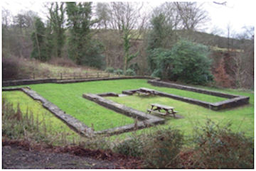 Further to the east a walled garden occupied the broader valley floor. It was semi-circular in plan and a gardener’s house was built just to the north. Here the river runs almost south/north allowing the sun to enter the sheltered vale.