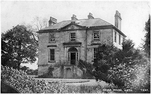 “TO BE LET, FURNISHED, For such number of years as may be agreed upon, Entry immediately, NEWCK HOUSE, parish of Airth, Stirlingshire, with Garden, Orchards, and Office houses. The House is modern, and contains four public rooms and eight bed-rooms, with ample accommodation for servants.  The whole completely furnished.  Newck is distant 27 miles from Edinburgh, and the Stirling and Alloa steam-boats call regularly at Kincardine Ferry, within about half a mile of the house.  Upwards of 20 acres of ground, as also, the right of shooting over the lands of Newck, and over the property of Easter Greenyards, can be let along with the house if required.
