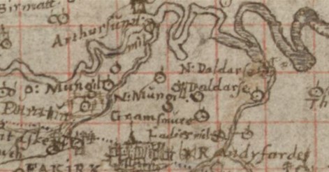 In 1712 David Ramsay WS of Lethandy in Perthshire bought Over Mungal with the mill and mill lands from Robert Elphinstone, who was his brother-in-law. David Ramsay then feued off small parts of Over Mungal to recoup some of his outlay and used the proceeds to buy part of Sword’s land. This included a farm which he renamed Lethandy after his Perthshire home (and which incidentally once stood on the north side of the river). It is noteworthy that David Ramsay was usually styled as “of Lethandy,” implying that he did not have a principal residence at Mungal.