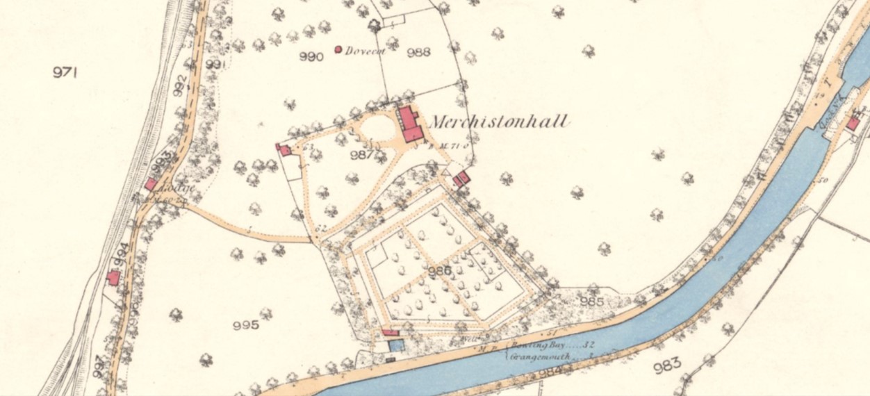 Shortly thereafter news of a much greater disruption to the landscape appeared. Construction of an inland navigation from the Forth to the Clyde had been much debated but now surveyors appeared on the ground and the route favoured took it in close proximity to the new house. Construction work began in 1768 and water was let into this stretch in 1772. At a meeting of the Commissioners of Supply of the county of Stirling held on the 21 January 1772 at Falkirk, they, upon the application of Michael Ramsay of Mungal and John Henderson of Burnhouse, appointed a general meeting of the Commissioners upon the grounds of the lands belonging to those two gentlemen for ascertaining the value of those lands occupied by the Forth and Clyde Navigation. They also considered the damages and inconveniences incurred by the proprietors and tenants (Caledonian Mercury 1 February 1772). At the insistence of Michael Ramsay a tall stone boundary wall had to be erected by the Canal Company along the section of the towpath that passed the walled garden.