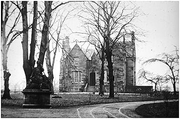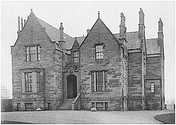 With a growing family it was decided to build a more modern and larger mansion to the north of the old one. During the years 1851-52 the new edifice slowly rose from the ground. The architect was James Brown of the firm of Brown & Carrick, architects, Glasgow, and the builder was James Law of Falkirk. The house was in a Tudor-Jacobean style similar to Kilns House. There was a prominent use of pointed and stepped moulded gables surmounted with small pillar and ball obelisk finials; square hood-moulded windows; stone corbelled roofs to low projecting elements such as the porch; and tall-shafted chimneys.