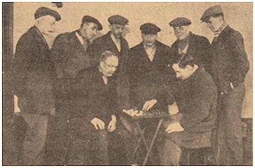 Illus 5: Unemployed men playing draughts in the club rooms at Thornhill House (Falkirk Herald 1 March 1933, 16).