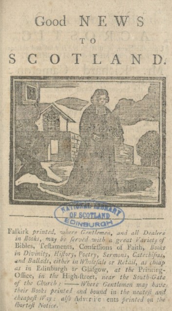 “Printed and sold at the South gate of the Old Kirk, in High Street; where Travelling Booksellers may be served for Rags or Money at the Stirlingshire Printing-house.”