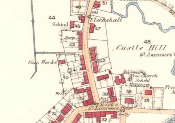 In the 1850s James Wilson was the owner and host of the St Laurence Inn in Slamannan. Around 1855 he played the lead in constructing a gas works in the grounds behind the inn which it served. John Spence, gas-fitter and brass-founder in Airdrie, acted as the engineer and fitter. The works was large enough to provide gas to the neighbouring houses and shops. When it and the inn were sold on in 1859 it was stated that :