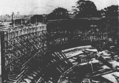 It had brick walls and an open top. After the Second World War both Scottish Dyes (then Imperial Chemical Industries) and Scottish Oils (then the Anglo-Iranian Oil Co) undertook major expansions and required a far greater use of water. Fortunately, the Falkirk Water Act which led to the construction of the Carron Valley Reservoir by the Stirlingshire and Falkirk Water Board stipulated that Grangemouth was entitled to 2.5 million gallons from that source each day. More was needed and negotiations with that Board were presided over by the Department of Health for Scotland. The amount of water taken by Grangemouth was increased to 8 million gallons a day, which necessitated the construction of a new filter station at Broadside capable of processing 13 million gallons daily. Provision was also made for the construction of a covered tank at the bottom of Salmon Inn Brae near Grandsable capable of holding 3 million gallons and the installation of pipes from Broadside to it. Grangemouth Town Council paid eight-elevenths of the cost of the 13½ mile-long pipeline and filters as well as £20,000 per annum for the reservation of water in Carron Valley Reservoir. The agreement was for this annual payment to last for something like 41 years, that is, until the Water Board had paid off their loans on the existing Carron Valley works; thereafter the charge for water was to be a nominal one representing administration, maintenance and repairs. Until the filter station at Broadside and the new trunk main were completed in an estimated three years’ time, the Water Board made adjustments in its supply system to enable Grangemouth to obtain an additional supply of 1,000,000 gallons a day to meet the immediate needs of industries in Grangemouth. However, national restrictions on the use of labour and materials after the war meant that the project ran behind schedule and the Anglo-Iranian Oil Company had to lend assistance. Materials, particularly the valves, were delivered late and often in the wrong order. Steel and spun-iron pipes had replaced the old cast-iron ones and it took some time for their use to be bedded in. Laying the main pipe to the Salmon Inn site was completed in mid-January 1951, but the contract for the tank there had not even been settled. A temporary arrangement was made to lead the water directly to Grangemouth from Salmon Inn. The service tank at Salmon Inn was designed to even out the supply to the consumers – the industries having peak periods of demand. It was also needed to reduce the water pressure and so during that initial period there was what was called the “water hammer” effect due to the sudden alterations that occurred in the flow, and this resulted in some damage.