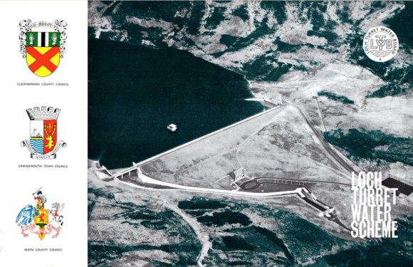 So, since 1876 Grangemouth Town Council had seen the implementation of water schemes at Millhall, North Third and Carron Valley. Each time it claimed that there was sufficient water to last a generation and each time more was required within a few short years and such was the case in 1955. Accordingly, it commenced meetings with the Interim Loch Turret Water Board which consisted of the counties of Perth and Clackmannan. Since 1946 they had been considering the enlargement of an existing arrangement at Loch Turret which dated from 1872 and supplied Crieff. Loch Turret is seven miles north-west of Crieff in a natural valley at the foothills of the Grampians. It was agreed that Grangemouth should become a senior partner in this concern and on 11 December 1958 the Secretary of State for Scotland signed the necessary Water Order. The civil engineers for what was one of Scotland’s largest projects were Babtie, Shaw and Morton of Glasgow. The area of the loch was to be increased threefold and the water level raised 40-50ft, giving a storage capacity of 4000 million gallons. The estimated available supply from the loch was 18 million gallons per day and the estimated cost of the entire scheme was £6 million.