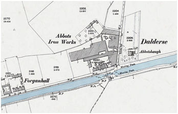 1856:  A new company started founding on the same site now known as the Abbots Iron Works.  It was the 5th foundry in the district and produced its first casting on 5th March 1857.  The partners were Anderson and Baker.  Mr Rennie, foreman at the Phoenix Foundry in Glasgow, became the first manager.  He had previously been foreman at the Falkirk Iron Works and was a native of the town.
