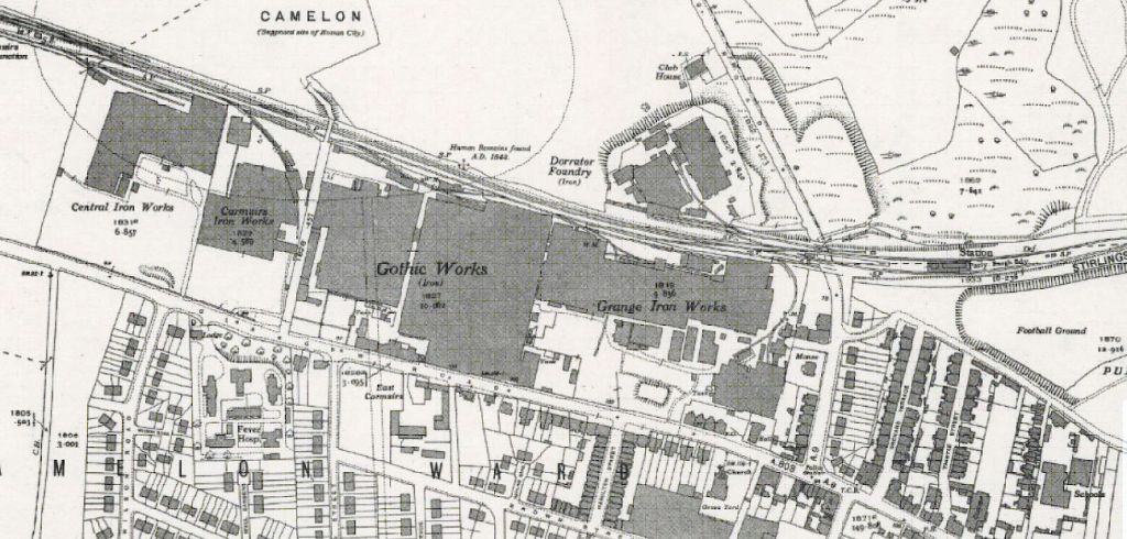 1898: Work began in February on the 10 acre Camelon site for the Gothic Foundry. At the same time a 19 acre site was purchased at Edmonton. Work on patterns started immediately. The first stage included a large moulding shop of six roofs for 100 men, a dressing shop, passing shop, grinding and glazing shops, engine house, sand and coke stores, a pattern store and shop. The loading shed besides the railway siding was over 200 ft long. James Strang was the architect. Demand was so high that the first cast was taken in October 1899 using a temporary cupola and temporary moulding shop whilst building work continued.