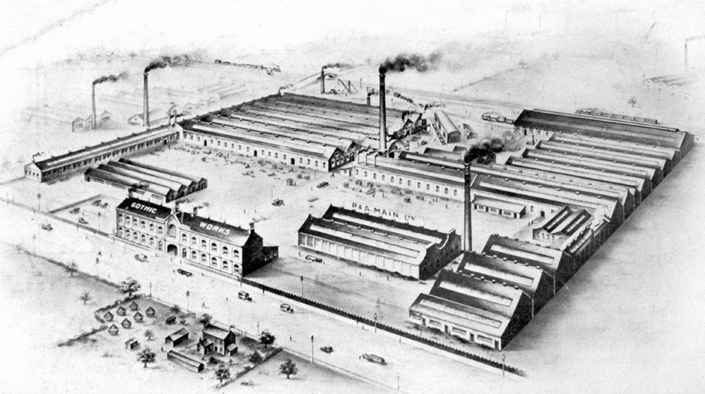 1900-1911: Additions in this period included an enamelling shop, electric shop, chimney stalk, paint and Berlin Black shop, and the plating shop was rebuilt.