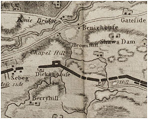 Illus: Roy’s Map of 1755 showing the site of Elf Hill with the Loch to its south.