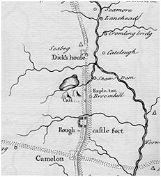 Today they are viewed as geological formations derived from the retreat of glaciers with one of the hills re-shaped in the 12th century for use as a motte to protect a nearby crossing of the River Carron. On Sibbald’s diagram they just happened to correspond to the location of Elf Hill and hence the error on Horsley’s map which also shows Camelon to the south of the Wall.
