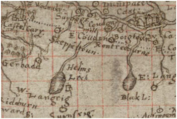 The large expanse of open water beside the Elf Hill was depicted on Pont’s map of the 1580s. The fact that it was called a “loch” along with neighbouring ones such as the Black Loch and Elrig Loch suggests that it was a natural feature. Pont calls it “Helin’s Loch” and given that the patron saint of the nearby chapel at Seabegs was St Helen we can assume that it is a reference to her.
