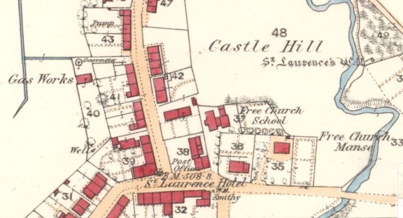 Just as important for a service centre was the establishment of a bank. In 1857 the City of Glasgow Bank announced that it intended to build a bank in the High Street immediately to the west of the St Laurence Inn. However, the bank was hit by a financial crisis and the project was delayed. Instead, the City of Glasgow Bank rented a house and garden from Margaret Wilson, the sub-post mistress. This was presumably adjacent to the post office mentioned above.