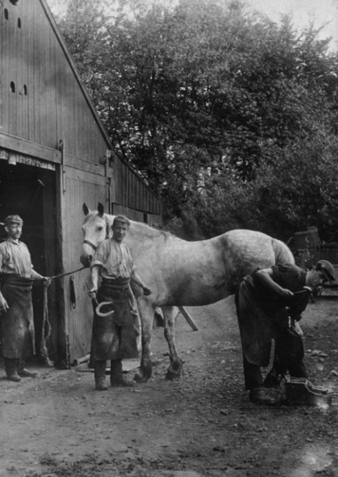 Blacksmiths were very important in this rural community. They shod the numerous horses, repaired farm machinery and household gadgets – even inventing new ones, and provided many purpose-made items that the ironmonger could not. Latterly their main task was to service the mines. At one time there were no less than six smiddies in the parish, three at Avonbridge, one at Crossroads and two in Slamannan. Perhaps the best known was that established by Robert Taylor a little way down the Avonbridge Road. In the early 1860s he was joined by Charles McLean who married his daughter, and in 1903 they left the business to their son Angus. Smithing continued until the Second World War with Angus the last working blacksmith in the parish.