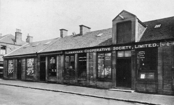 Perhaps the most important institution of this period was the Slamannan Industrial Co-operative. It is said that one day after work in 1860 a handful of colliers met on the Water Green in Slamannan and discussed the new co-operative movement then making the news in Rochdale. They decided that each of them would put ½d into a central fund so that they could send a letter to Rochdale seeking for information. More pennies and much more correspondence left them in such a state of knowledge that on 6 February 1861 the Slamannan Industrial Co-operative Society was registered.