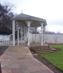 A wooden stage built into the walled garden at Dollar Park in the 1920s doubled as a bandstand. The enclosure provided a sheltered area in which to listen to the bands or plays. Today this has been revived by the construction in 2012 of a raised platform which used the cast iron columns removed from Grahamston Railway Station.