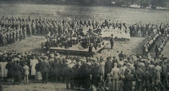 It was, however, for their social uses during the war that the parks are best remembered. The Home Guard held fundraising events and parades. The ARP held demonstrations and displays of its equipment; as did the armed services. National fundraising campaigns such as Salute the Soldier, War Weapons Week, Wings for Victory, all had events in parks. Drumhead services needed the space that only the parks could provide. Along with the Dig for Victory campaign there were others with parks at the centre, such as Holidays at Home. By holidaying in the parks the trains and roads were freed up and consumables conserved. Live music was provided by bands, many of them military. Recorded music could be used for dancing to and dance floors were constructed. That at Dollar Park was of wood, but the one at Zetland Park was made of asbestos sheets. Shows were promoted and even circuses continued. Sheepdog trials became surprisingly popular. There was Punch and Judy for the children.