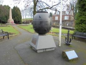 In 2017 Bailie William Buchanan acquired an old First World War sea mine and had it set onto a tapering concrete plinth in the park. A flagstaff and anchor were planted nearby. It was unveiled on 30 April 2017 by Provost Pat Reid. The monument is dedicated to the memory of the personnel of the naval services (military and civilian) who lost their lives in both world wars.
