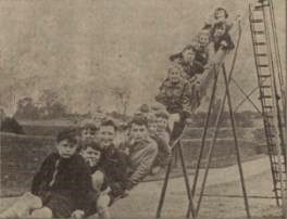 Upon the return of peace, the parks superintendent suggested in 1946 that the park should be properly drained, that walks should be cut round by the side of the burn, enclosing the burn and laying out the hill suitable for recreational purposes with seats and children’s playing equipment. He estimated the cost at £2,000. This large sum was never going to be allocated in one go but it was agreed to make progress. In March 1947 the Parks Committee recommended the expenditure of £375 10s plus purchase tax of 33½% on improvements at Camelon Old Park (to distinguish it from the New Park in Nailer Road).