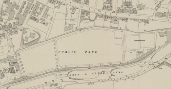 In the mid-nineteenth century Camelon was well-served with civic leaders who helped to provide the village with water, drainage and lighting. One of their early goals had been the provision of a public park in which the children could play safely. Practical as ever, they combined this purpose with that of bleaching! In 1862 the “town council,” properly called the “School and Well Committee,” leased a large field on the north side of the Forth and Clyde Canal. In the first week of June that year the King of the Nailers declared the park open “for the purposes of recreation and bleaching.” The copious water from the Tamfourhill Burn and the south-facing slope made the field ideal for the bleaching and the hedge along the northern perimeter could be used to place the linen on for drying – this area was already known as The Hedges. Quoits were popular at the time and a pitch was laid out.