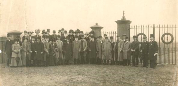 At the end of October 1909 all of the gates and railings were in place and the Council collected the keys from the manager of the Carron Company. Things proceeded slowly. In May 1911 offers were opened for the repairing of the railings of the William Dawson Park from Grahamston Iron Co., Falkirk Iron Co., and Carron Co and it was agreed to accept the offer of Grahamston Iron Co. It was 14 June 1912 before the park was formally opened by J.J.S. McLaren of Ratho Park. He was a cousin of Miss Dawson who had died in the meantime.