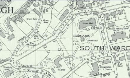In 1899 Bo’ness Town Council took a feu of the Glebe Park in Bo’ness from the Rev Robert Gardner, the parish minister. The capital costs came from the Harbour Transfer Fund. The glebe was located above the town centre – to the west of School Brae and north of Braehead. Here it enjoyed splendid panoramic views across and along the Forth. That year it was used for agricultural purposes and early in 1900 the process of turning it into a public park began in earnest. Nearly ¾ acre of the Glebe Park Feu was used to improve the School Brae road and to form a new west/east road called Stewart Avenue. The construction of this road meant that there was a detached part of Glebe Park to the north-west of the main park and this was later used for a war memorial. Shrubs and trees were planted in the park. At the south-eastern corner a pillared gateway had been erected. For the convenience of those living in the Bankhead district, a small self-closing gateway with a flight of steps was also placed in the wall at the south-west corner. Both the road and the park were opened with due ceremony during the Bo’ness Fair on 13 August, the latter by Mrs Law, wife the convener of the Parks Committee, with a silver gate key. The key bore the inscription: “Presented to Mrs Law by the Rev, Robert Gardner, minister of Bo’ness, on the occasion of the opening of the Glebe Public Park. 13th July, 1900.” When the gate had been opened, the parks committee’s carriages and the Fair Queen’s carriage drove across the park and re-joined the procession at the north-west corner.
