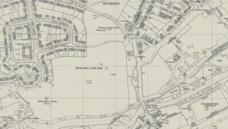 Construction of the housing scheme began again in 1950 and the streets were named after trees. There were few of the original trees left, though a large Spanish chestnut was one of them. The parkland to the east of the castle was retained and made into a public park; its diminished size meaning that the last agricultural show was held there in 1952. A footbridge was constructed over the River Carron to connect the housing schemes to either side and was opened in June 1955.