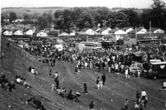 The galas took place at the south-east corner of the enlarged park, near to Denny Bridge. Castle Hill provided a natural amphitheatre for the ceremonies. In 1986 the hill was re-scarped so that a new football field and a running/cycling track could be installed. The top of the hill had been planted with trees in the late 1970s
