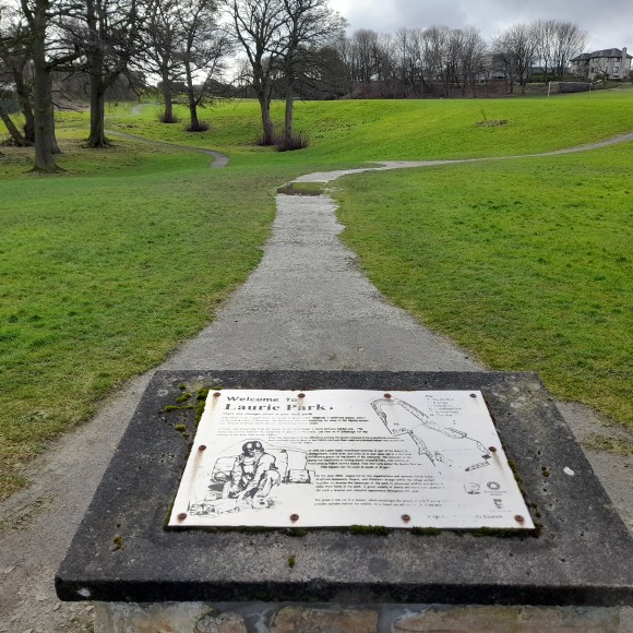During the Second World War the park was often the setting for exercises by the ARP authorities – its uneven surface making it easy to simulate the aftermath of bombing raids. On one occasion a virtual mustard bomb was discovered there – war games. It was during the war that a football pitch was laid out and goalposts provided. The local units of the Boys’ Brigade made good use of it. Extra land had been acquired to enable to pitch to be full size. Further landscaping was carried out after the war.