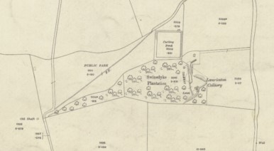 Up until 1932 the park had been on the relatively level ground at the foot of the hill with a curling pond just to its east. The Laurieston Park housing scheme began in the late 1930s and was extended in the 1950s to the Icehouse Brae. Foreseeing an increase in demand, the Village Committee bought 3.8 acres of additional land at the top of the hill for an extension to the park and this was laid out and equipped before being handed over to the Eastern District Council. The new section was separated from the old by the Swinedyke Plantation and was more formally laid out. The west side of the park contained an avenue of trees lining the drive to McKillop’s Buildings at Thornbridge. This was the main artery for those tenements.