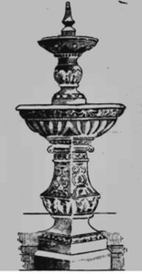 Part of the new park was known as the “Barrel Braes” from a water spring that filled a barrel set into the ground. The local inhabitants used to dip their stoups into the barrel to obtain their water supply. Now they had piped water. The little spring was landscaped at the expense of Provost George Cadell Stewart. Rock work and plants were placed in the hollow and a ceramic fountain was obtained from Doulton & Co in London and unveiled the week after the opening of the park – to be known as the Diamond Fountain. This area was surrounded by iron railings supplied by Alexander Callendar of Bathgate at a cost of 9d per linear yard. A cast iron drinking trough fed from the spring was placed outside the enclosure for the public to use. HM Cadell was an expert at the construction of bonfires and the final celebration of the Diamond Jubilee in the park took the form of a large bonfire.
