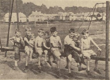 The playing fields in Valley Field at Westquarter were laid out by the Eastern No 2 District Council in 1955 as part of the King George V Scheme. The field had been purchased from Stirling County Council in 1952 in preparation. An engraved plaque was placed on each side of the two pillars at either side of the gate. It was officially opened in April 1955 and contained a football field and a children’s playground.