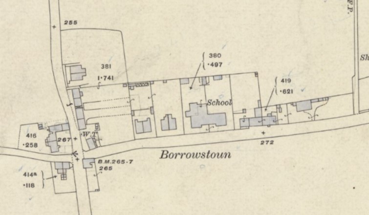 Upon its formation in 1873, Bo’ness Parish School Board examined the 1871 census to assess the parish’s need for educational provision. It found that there were many colliers’ children in the Newton/Borrowstoun area that either had to travel a long distance or simply did not attend school. It immediately resolved to build a new school to accommodate 200 pupils for that area. A site at Newton was initially favoured but the Duke of Hamilton’s trustees provided favourable terms for Gibb’s acres at Borrowstoun and so it was feued.