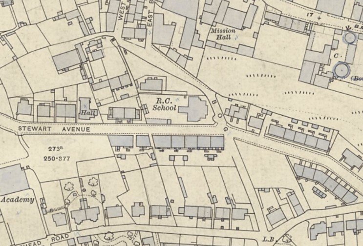By 1896 the number of Catholics had increased to the point that Rev Easson decided to establish a permanent school in the town. In June 1896 the church approached the Bo’ness School Board to see if the Infant School, which it intended to close, was for sale, and if so at what price. The Board replied that the Established Church had a claim on the infant school for meetings and therefore it could not be sold to them. Later that same year Carriden School Board was asked if it would be willing to sell the apparently redundant school at Grangepans but in the event the Board there retained that school. So fund-raising commenced to erect a new school. A site was acquired at Stewart Avenue in 1897 and James Dodds prepared plans for a joint school and chapel.