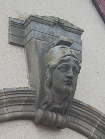 Although a bell was provided it was too late for a belfry. The school extension opened on 13 April 1897. It was a large square block with a central hall typical of the period. Strictly classical and well proportioned in creamy brown stone, it had an advanced central bay capped by balustrading on its south façade. In the centre was a moulded arched doorway with a keystone depicting the head of Minerva – the Goddess of Wisdom. This was flanked by arched slit windows and channelled end piers. On the first floor of this central bay two large two-light windows were set in antis surrounded by paired Doric pilasters. Such pilasters also in antis separated the windows in the flanking bays. Below the eaves course the plain band carried the inscription “SCHOOL BOARD OF DENNY”, and a similar inscription occurred on the central band above Minerva – “DENNY PUBLIC SCHOOL.”