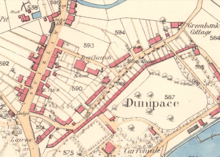 “A school situated near to the Free Church of Dunipace. The average number of scholars is 90, 40 of whom are females. The teacher is solely supported by the fees of the pupils. The usual branches of education are taught together with the Latin and Greek languages. Property of the Free Church congregation.”