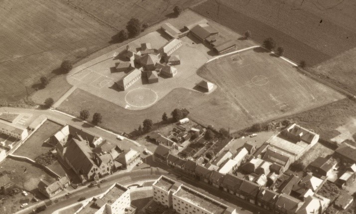 Building operations began in May 1933 and the school was formally declared open on 31 August 1934. The road had been widened to 40ft adjoining the school feu which extended to approximately 5.5 acres. The school, built of brick and roughcast, was arranged like a wheel in plan with the classrooms emanating like spokes from an octagonal hub. This arrangement supposedly permitted the maximum amount of air and ventilation. At the core was an octagonal-shaped assembly hall with one of the staff rooms against one of its walls, connected by means of two doors with the hall so that it could be used as a retiring room when any special functions were held. A portable platform was provided. The hall was connected by open corridors to the classrooms, with concreted open courts between the corridors. There were seven classrooms, each for 50 pupils, including a large baby room. This and the other infant room were fitted with individual pigeon-holed cupboards for storing each pupil’s exercises. In close proximity to these two rooms were two small cloakrooms and lavatories for the exclusive use of the small pupils. For the older pupils two main cloakrooms, lavatories, a medical room, two staff rooms, and stores were also provided. The grounds around the school were laid in tar-macadam and asphalt, with grass playgrounds beyond. To the south of, and apart from, the main building, was a block containing two play-sheds. The cost of the scheme from plans by the County Council’s own architect, Mr A N Malcolm, was in the region of £14,000. It accommodated about 350 pupils.