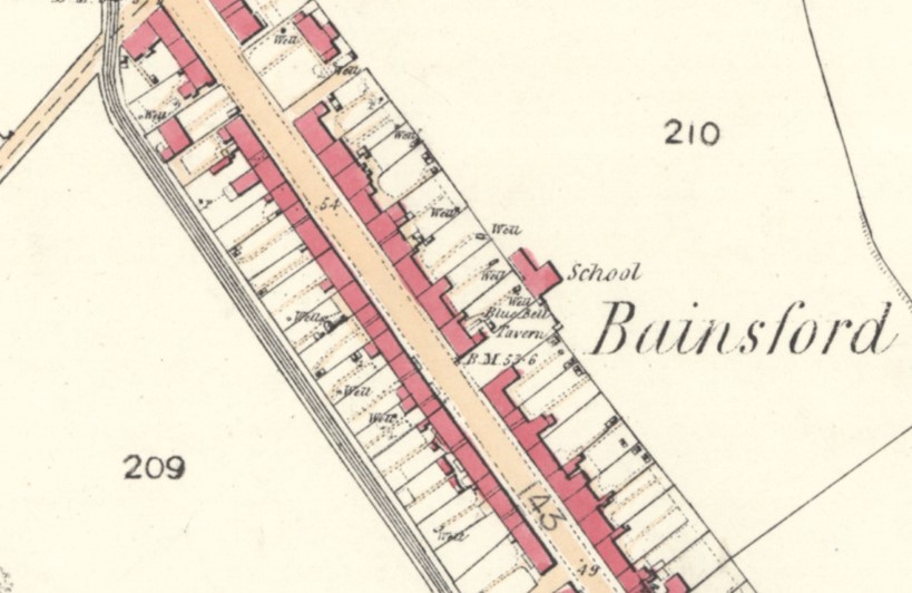 The building afterwards known as the Bainsford Subscription or Self-supporting School seems to have been originally erected in 1797 by the Bainsford Ploughmen’s Friendly Society for use as a club house. The office-bearers of the society were Alexander Black, portioner, Grahamston, preses; James Shaw, Bainsford, boxmaster or treasurer; George Frazer, wright, Bainsford, steward. These office-bearers apparently conjointly feued ground from Michael Ramsay of Mungal just to the east of the gardens on the east side of the Main Street of Bainsford behind the Bluebell Tavern (later called the Carronade Arms).