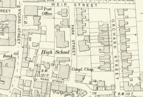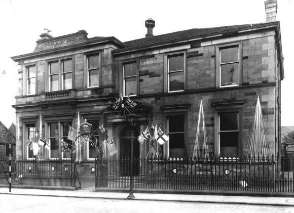 At the beginning of the First World War the Science and Art School building was temporarily occupied by the military. Despite the briefness of their stay they managed to do a fair amount of damage. The work of the school soon resumed – it was training the engineers so much in demand. After the war the school continued as before with more students from outside of the burgh thanks to travel grants provided by the Stirlingshire Education Authority. That body struggled with the demands placed upon it and had to juggle with the properties in its care. In the late 1920s it found that it had to create new schools for the Catholic population and proposed moving the Science and Art School into the old High School on the west side of Park Street and using the vacated building for Roman Catholic pupils entering the first three years of the secondary course, and for those in the year I and year II advanced division courses.