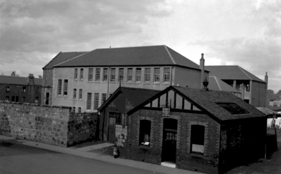 Of the old school, which had twelve rooms, the stone front only was retained. All the buildings at the back were demolished to make room for new classrooms, of which there were fourteen, accommodating 640 pupils, as well as a science laboratory for advanced pupils, three staffrooms, and a room for medical inspection. The classrooms were built of brick and ranged around a tall one storey central assembly hall which measured 48ft by 27ft. Each classroom had windows on opposite sides for cross ventilation, and they were lit by electricity. There was also ample cloakroom accommodation; and the whole building had central heating. A N Malcolm, architect, produced the plans and James Hogg acted as clerk of works, keeping costs down to £9,000 (a new school would have cost £21,000).