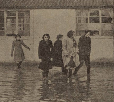 Meanwhile, routine maintenance work continued. It was at this time that James Robertson, a master slater and chimney sweep, was doing some work on the ventilator on the roof when he lost his hold and fell to the ground sustaining severe injuries. Amazingly he made a good recovery. In September 1951 the possibility of using the hall of the nearby Grange Church for surplus pupils was explored. Just three months later all of the pupils got a day off when the Grange Burn overtopped its banks and the entire area flooded.