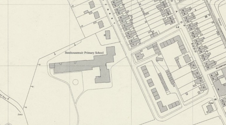As part of the post-war rebuilding of schools throughout Stirlingshire a new school was opened at Stenhousemuir in 1957. It lies to the west of Rae Street and is structurally typical of school buildings of that era with steel frames, rendered brick walls with glass panels, and low-pitched felt roofs. A water tower facing onto Rae Street provides some distinction.